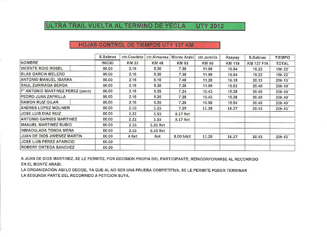 CLASIFICACION ULTRATRAIL VUELTA AL TERMINO DE YECLA 2012