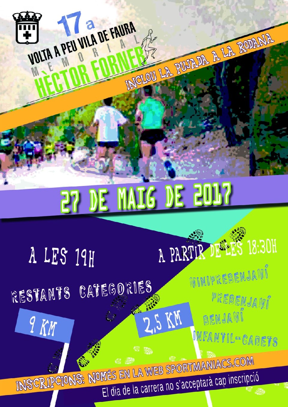 CLASIFICACION Y RESULTADOS 27/05/2017 Volta A Peu Vila De Faura Memorial Hector Forner sábado, 27 de mayo de 2017 Carrera Faura sobre una distancia de 9 Km consultar los tiempos realizados.